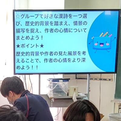 グループで好きな好きな漢詩を選んで、歴史的背景や描写された風景を考え、作者の心情をまとめようという課題です。