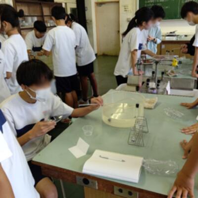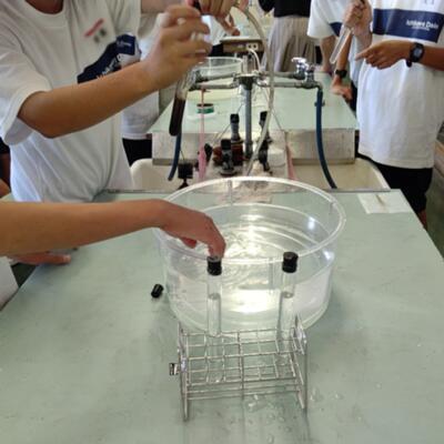 様々な気体を発生させて集め(収集にも、それぞれの気体に適したいろいろなやり方があります)、その性質を調べる実験。