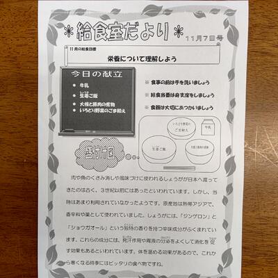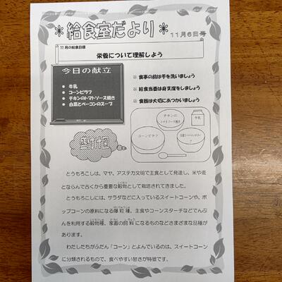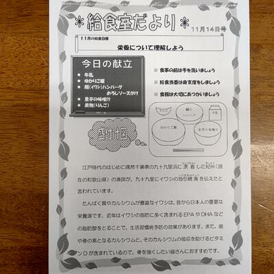 給食最終日にあたり、「給食室だより」に給食室からのメッセージが書かれているので読んでみてください。