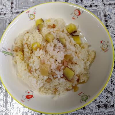 グリーンピースの風味が全体によく行き渡ったグリーンピースご飯…グリーンピースは、白百合学級のみんなが時間をかけて一生懸命さや剥きをしてくれたものです。