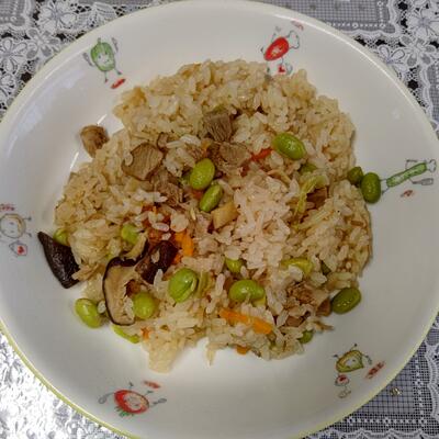 枝豆のグリーンと赤ピーマンの、色の対比も鮮やかですね!