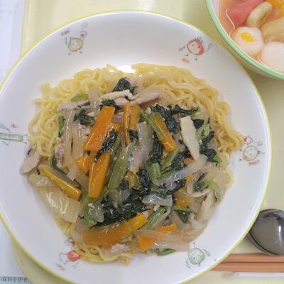 豚肉と小松菜のあんかけ焼きそば & ひじきの春巻き