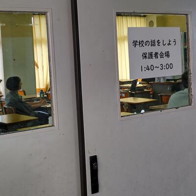NPO法人「学校の話をしよう」に基礎講演、ファシリテーターをお願いして「対話」のスキルを学び、これからの学校生活を考えるきっかけにする…という内容です。生徒だけでなく、学校に関わる全員が対象の取組なので、教職員も参加し、保護者にも参加を呼びかけました。