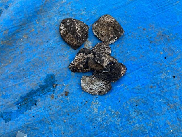 現在、約三分の一を調査中ですが、縄文時代から弥生時代にかけて食べていたことが分かる貝殻(はまぐり・牡蠣)が発見されました。調査は引き続き2月末頃まで続きます。