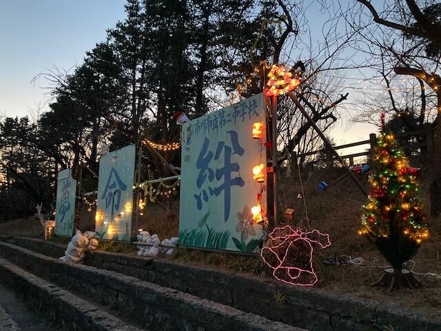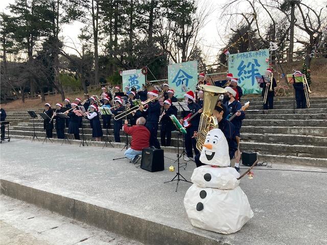 PTAの皆様や先生方からお借りしたイルミネーションの点灯と、吹奏楽部の素敵な演奏を参加者みんなで楽しみました。