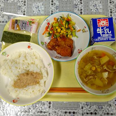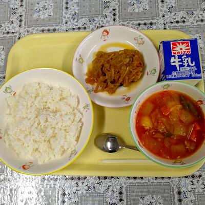 キムチご飯、中華スープとともに、全体の満足感も高い献立です。