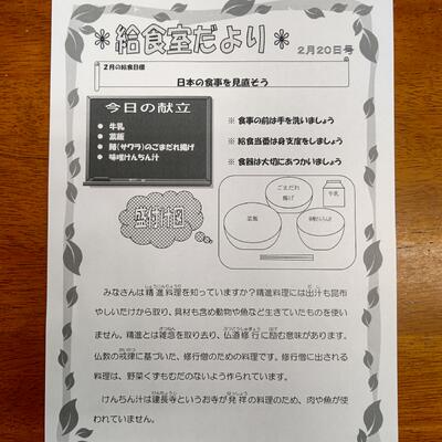 給食だよりには、栄養教諭の先生からの思いを込めたメッセージが載せられています。是非読んでみてください!