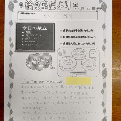 今日も生徒(1年生)が考えた献立…その名も「コンビニ給食」!