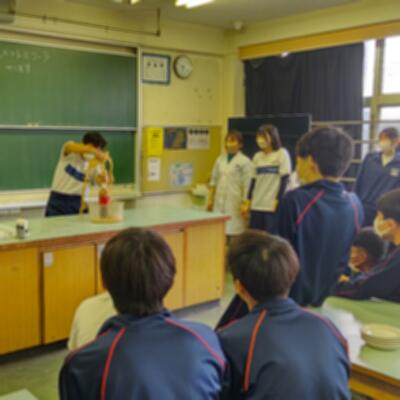 生徒が「教科書や資料集、ネットなどで見て、1度はやってみたいと思った実験」や「今までやったなかで面白かったり上手くいかなかったりして、もう一度やってみたいと思った実験」に自由に挑戦できる時間を卒業前に設けました。