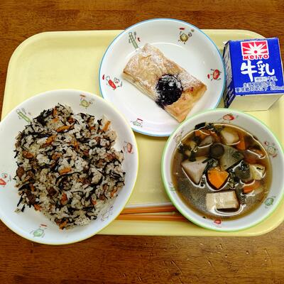 たっぷりまぶされたひじきの風味、鶏肉の旨味が食欲をそそります。