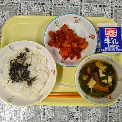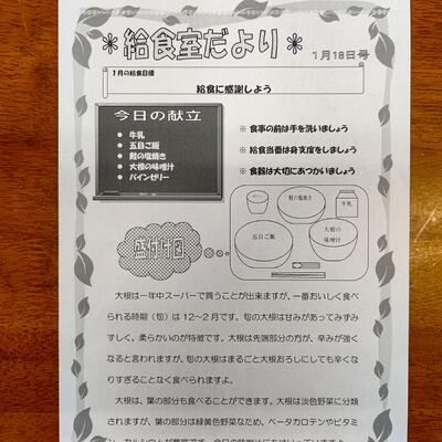 お正月に食べ過ぎたお腹に優しい七草粥の味わいに、白玉もちが入った七草雑煮…味わい深い新年最初の給食です。