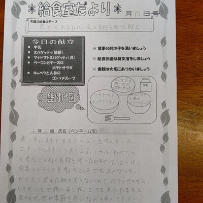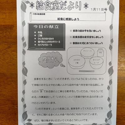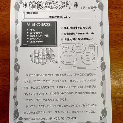 給食室だよりで鯨食の歴史や食文化も学びながら、いただきます。