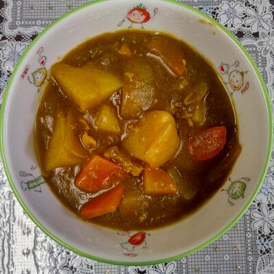 じゃがいも、ニンジン、タマネギ、お肉…定番の食材がたっぷり入って安定の満足感です。