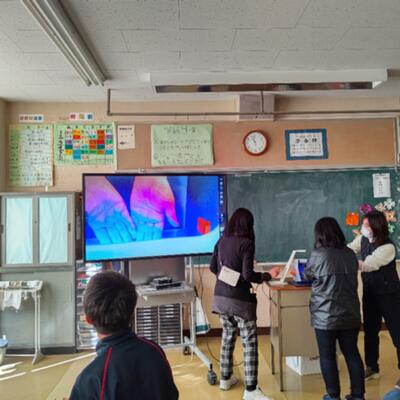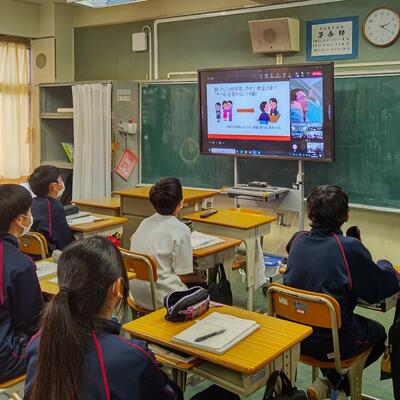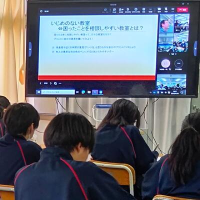 18日(木)、1年生の全クラスをリモートで繋いで、学年道徳を行いました。