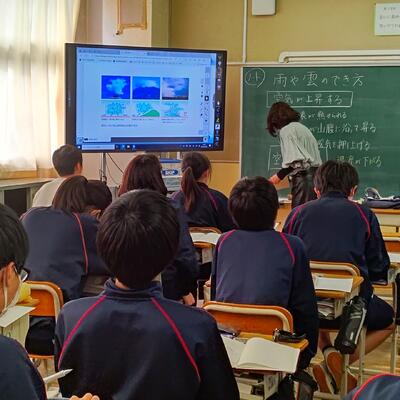 低気圧によって雲が発生し、雨が降る仕組みを学んでいます。