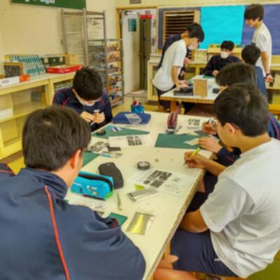 「螺鈿(らでん)で朱肉のカバーを飾ろう!」という課題。