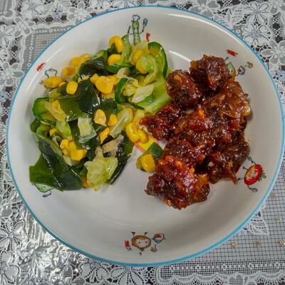 肉の旨味を引き出す味つけも丁度よく、わかめご飯に合います。
