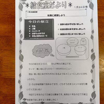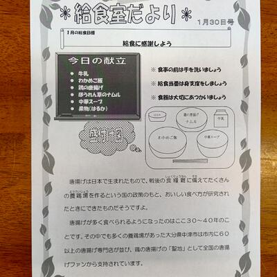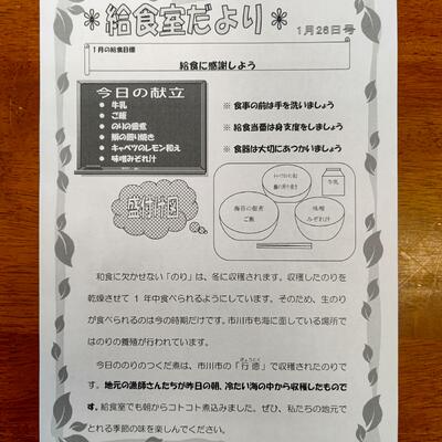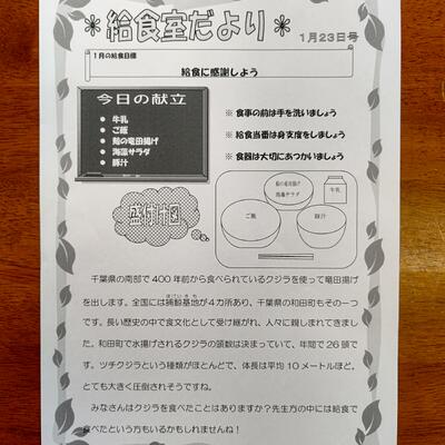 給食室だよりで鯨食の歴史や食文化も学びながら、いただきます。
