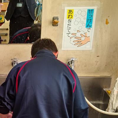 生徒たちは、先ほど(チェックするとは言わずに)、それぞれ手洗いをしたのですが…