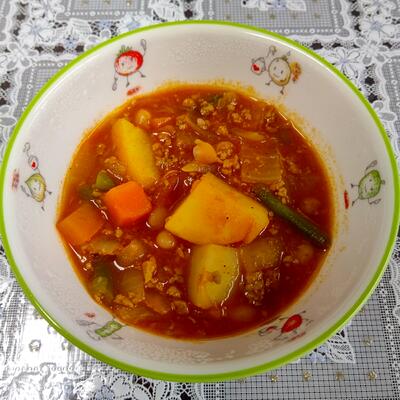メキシコ料理が起源のチリ・コン・カン。挽肉と豆の風味、ホクホクのじゃがいもとシャキシャキのインゲンの食感が絶妙で、香辛料の香りが本格的です。