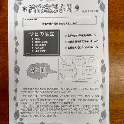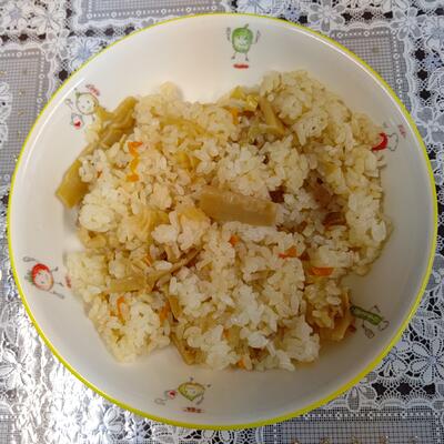 缶詰めではないフレッシュなたけのこを使ったたけのこご飯。たけのこの香りもシャキシャキした食感も新鮮で、食が進みます。