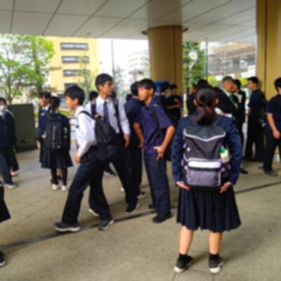 集合時間になると周囲の迷惑にならないように落ち着いて話を聞いて(さすが二中生(^-^))、満員の総武線で東京駅へ。(通勤ラッシュの大変さを実感…)