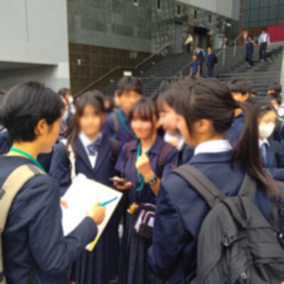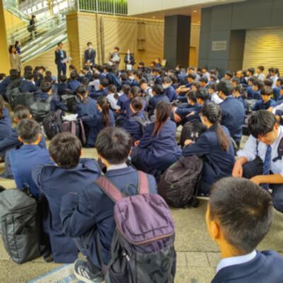 大階段で、学年全員の記念写真を撮った後、グループごとに担当の先生のチェックを受けて、いよいよここから生徒主体の活動開始!