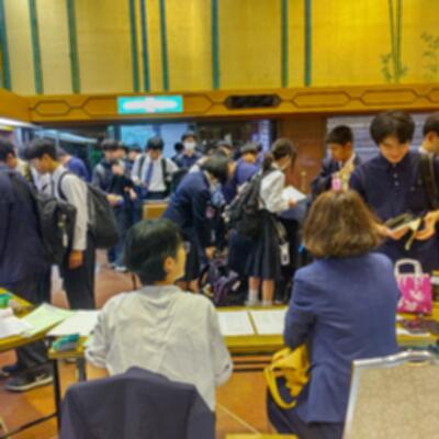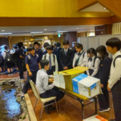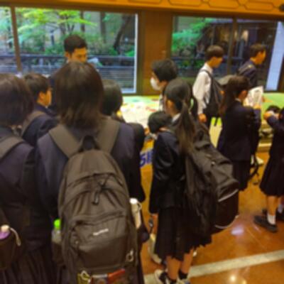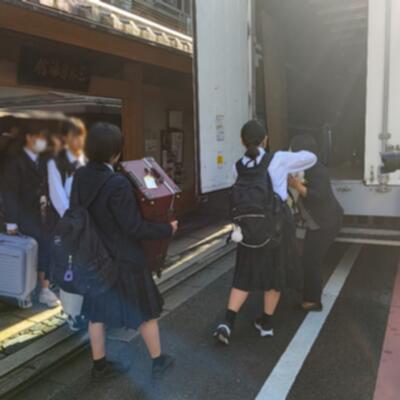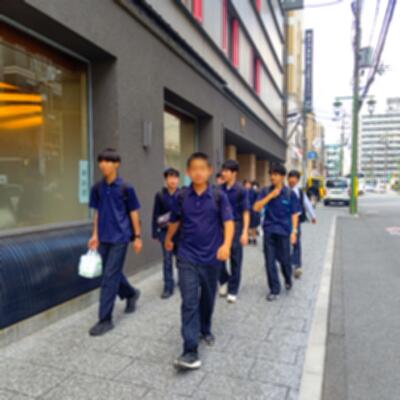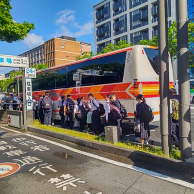 各地での充実した活動を終えた二中生を乗せたバスが、京都駅近くの昼食場所に次々に到着。