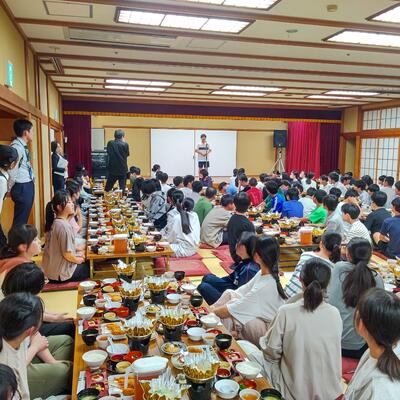 美味しい夕食をみんなでワイワイ楽しく食べる…修学旅行の醍醐味のひとつです。