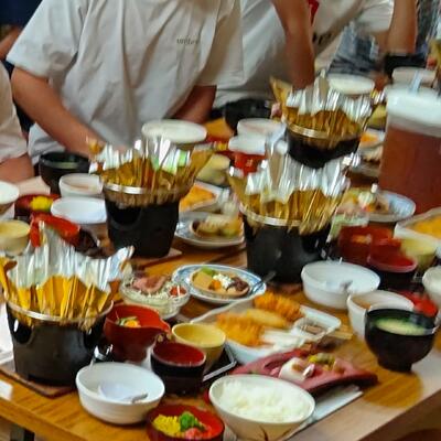 部屋のメンバーと楽しく落ち着いて食事を楽しんだ後は、出発の準備を整えます。