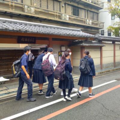 急いで食べて午後の見学場所へ…(京都ならではの店に入って食事そのものを体験にしている班もたくさんあります(^o^))