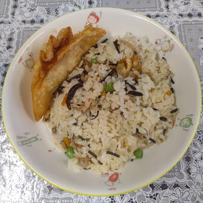 ひじきの風味に油揚げの味わいが程よく行き渡っていて、お米の炊き加減も丁度いいひじきご飯。ニンジンにインゲンの彩りもきれいです。