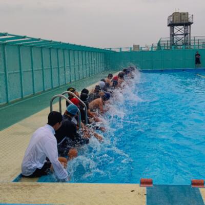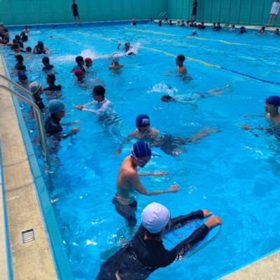最後はペアワーク。泳げる人と泳げない人がペアになって、泳げる人が泳げない人に教えます。