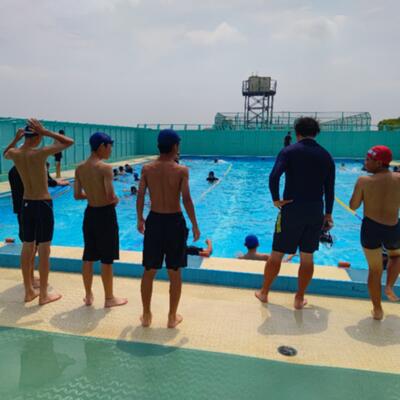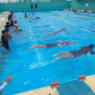 「全く泳げない」「ある程度泳げる」「自信がある」…自己申告で3グループに別れて25mを何本か游ぎます。