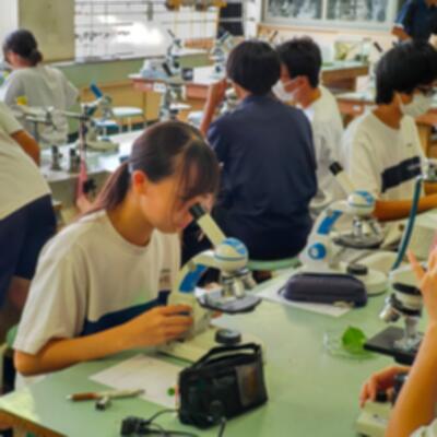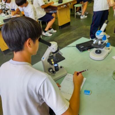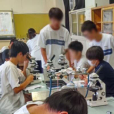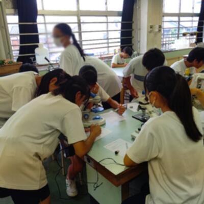 お互いに顕微鏡を見せあって、生物の神秘を確認し、感激していました。