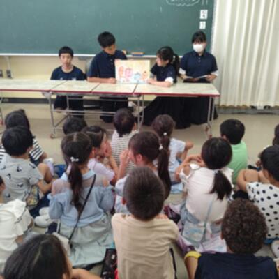 挨拶をして、さっそく絵本を開きます。役割分担をしながら、数人で読んでいくので、まるで劇のよう。 楽しい場面は面白おかしく、ちょっと寂しい場面はさみしそうに…気持ちを込めて読み進めます。