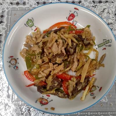 豚肉とともに比較的歯ごたえのある、千切りにしたレバーが入ったチンジャオロース。栄養たっぷりで、味もひと味違います。