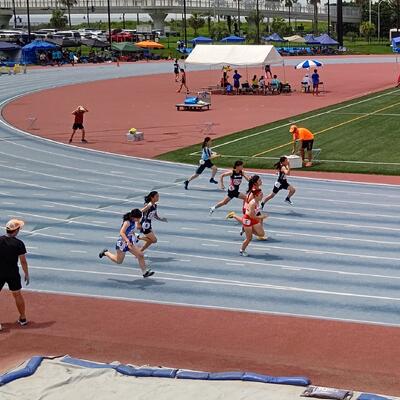 まずは女子。100mワンツーフィニッシュの2人をはじめ全員が力を出し切り、バトンパスもきれいに決まって、鮮やかにゴールテープを切りました。堂々の優勝です!