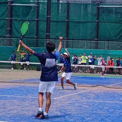 第2試合の筑波大学付属中線は、攻守がかみ合い、練習してきた成果が出せて第1セットを快勝。第2セットは序盤、自分たちのミスから相手の先行を許すも、最後はケガでフル出場ができなかったエースでキャプテンのサービスエースが決まり、劇的勝利。決勝トーナメント進出に望みをつなぎました。