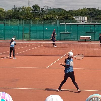 団体戦…二中Bは1回戦の妙典中Bとの戦いで、3ペアそれぞれ一進一退の熱戦を繰り広げましたが、あと一歩届かず敗退。仲間の応援を受け、最後まで明るく前向きに戦いました。