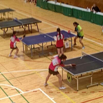 団体戦…二中Bは1回戦の明海中Bとの戦いは、3ペアそれぞれチームワークよく戦って見事勝利。2回戦の四中Aにも善戦。最後は敗れましたが、声を出して果敢に戦いました。