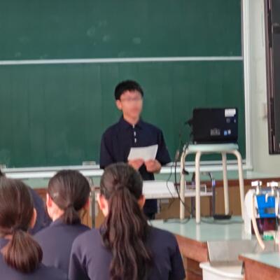 選挙に先だって、リモートで立会演説会が行われ、2年生5名、1年生4名の計9名の立候補者と、それぞれの応援弁士が堂々と思いを述べました。