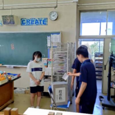 実際の選挙と同様の流れで投票を行い、「生徒会役員」8名(生徒会長を含む)と「生徒会長」1名を、生徒一人一人が当事者意識を持って選びます。