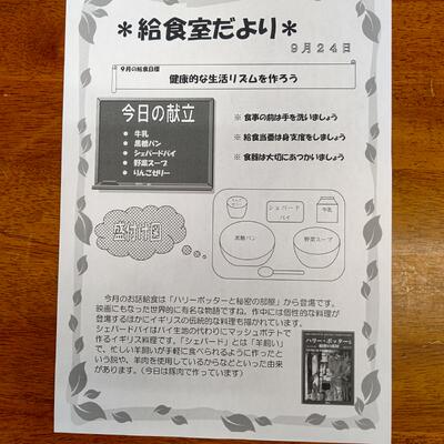 今日はお話給食…ハリー・ポッターから、イギリスの伝統的な料理、シェードパイです。