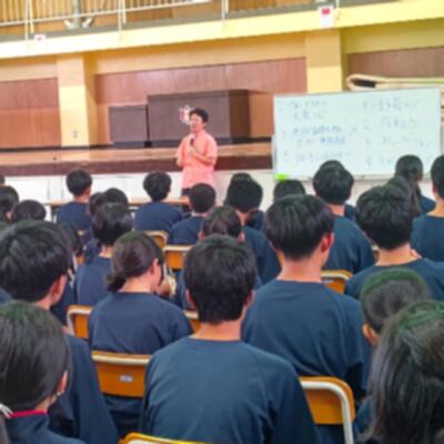 キャリア教育の一環として、外部から講師を招いての講演会です。