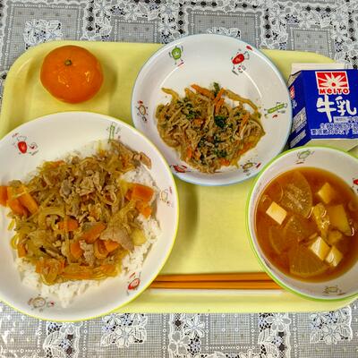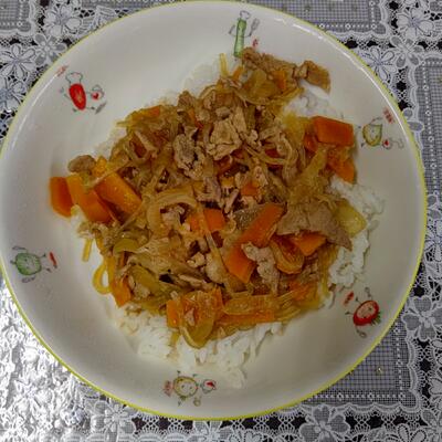 豚肉がたくさん入って満足感は満点の具だくさんの豚丼。
