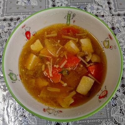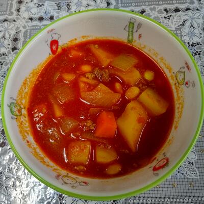 ホクホクのじゃがいもに人参、トロトロのタマネギの味わい、豚挽肉の旨味にコリコリした大豆の食感がアクセントになっていて、エスニックな味付けが食欲をそそります。