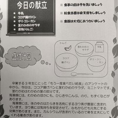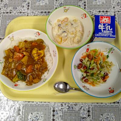 カレーはもちろん3年生がもう一度食べたいリクエスト給食。相変わらずスパイシーさ、具材の柔らかさが絶妙です。