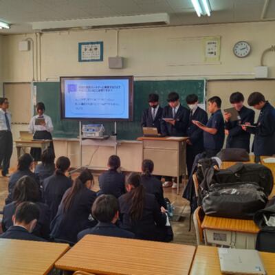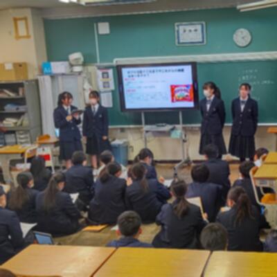 総合的な学習の時間に、2年生の「校外学習事後学習発表会(企業訪問発表会)」が行われました。