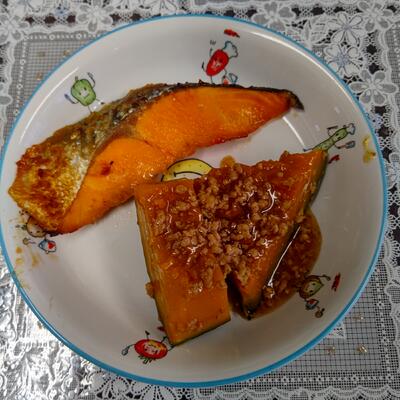 鮭の西京焼き & かぼちゃのそぼろあんかけ